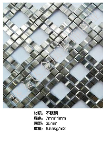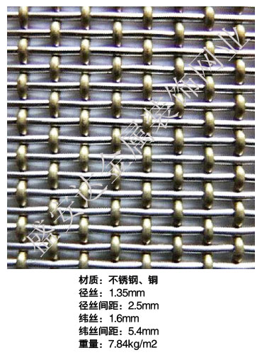 本產品,采用優質不銹鋼、黃銅、磷銅編織而成,從拉絲、捻股、合繩、拋光、漂洗、織網、銷售及售后服務等方面入手,逐漸形成生產與銷售一條龍服務。產品具有經久耐用,華麗高檔,科技含量高等特點,被廣泛應用于高級建筑的窗簾、吊頂、樓梯、電梯、豪華辦公大樓、賓館、豪華舞廳、營業大廳等建筑物的室內外裝飾,在燈光照射下金碧輝煌,典雅精致。